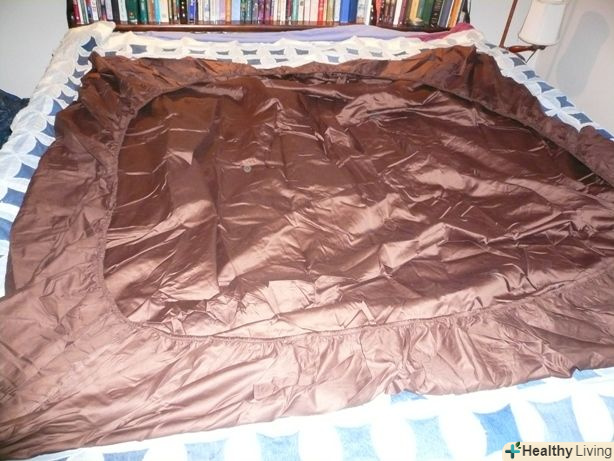 Постеліть простирадло на водяну ліжко, вирівнявши її верхній край з верхнім краєм ліжка.