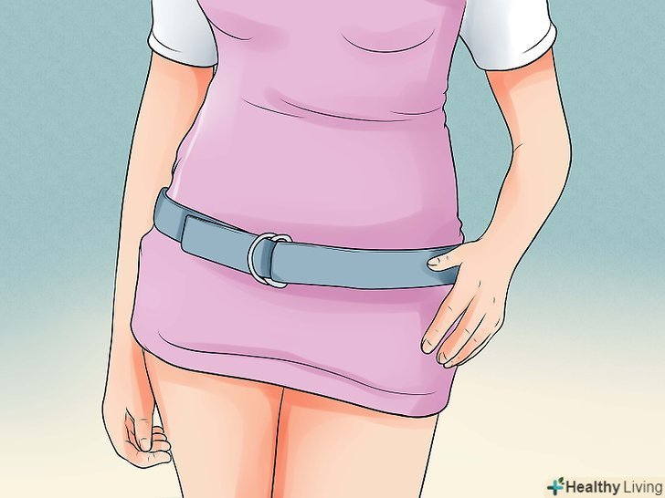 Виміряйте обхват талії. Якщо ви ще не знаєте розмір своєї талії (наприклад, після покупки штанів), його дуже просто визначити. Візьміть мірну стрічку і пропустіть її навколо природної лінії талії, яка знаходиться між верхньою частиною стегон і пупком. [1] зніміть мірки з того місця, де стрічка починає друге коло, це значення і буде вашим обхватом талії.- Деякі жіночі ремені прийнято носити на стегнах, а не на талії. В такому випадку спустіть мірну стрічку на кілька сантиметрів вниз, щоб вона вільно лежала на ваших стегнах, і зніміть мірки.
