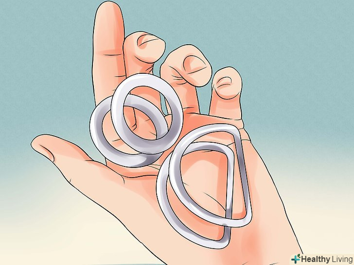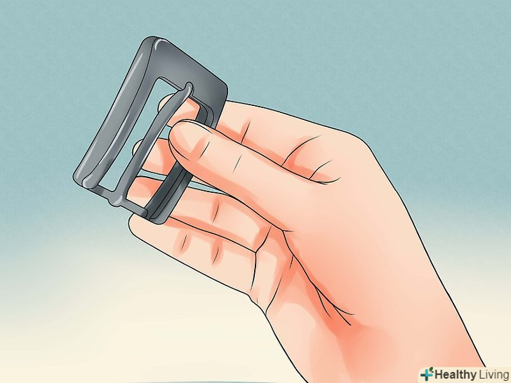 В якості альтернативи візьміть пару кілець у формі букв «O» або «D». якщо поруч з вашим будинком не продаються пряжки для ременів або ви бажаєте заощадити гроші, в якості аналога можете використовувати пару металевих кілець. В ідеалі, ці кільця повинні бути виготовлені з нержавіючої сталі або іншого стійкого до іржі матеріалу, мати форму букв «O» або «D», бути шириною з пояс і бути однаковими.- Такі металеві кільця зазвичай можна за безцінь (по 50-100 рублів за кільце) придбати в господарських магазинах або інтернет-магазинах.