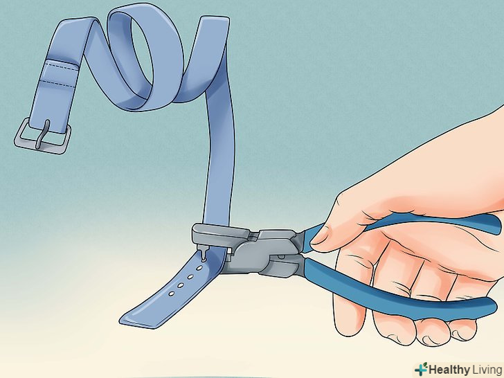 Додайте отвори в іншому кінці, якщо вони необхідні. якщо ви використовуєте пряжку, яка просмикує язичок в отвір на іншому кінці ременя, тоді вам потрібно буде зробити ці отвори. Ви можете зробити невеликі отвори в поясі за допомогою гострого ножа, ножиць і навіть Викрутки. [6] переконайтеся, щоб отвори були розташовані на однаковій один від одного відстані і вирівняні посередині ременя.- Не залишайте краю отворів пошарпаними, це зробить їх вразливими до зносу. Замість цього використовуйте вушко або петельний стібок. [7] Можете навіть скористатися диропробивними кліщами, якщо не бажаєте робити все руками.