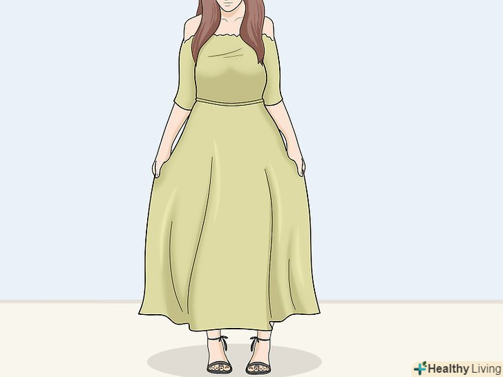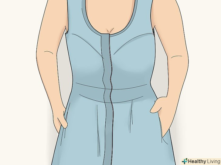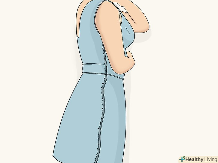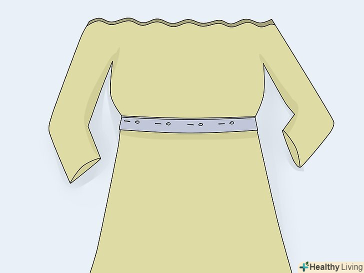Приміряйте вивернуте на виворітну сторону плаття і прихопіть його в талії вузьким ремінцем. Візьміть плаття, яке хочете переробити, і виверніть його навиворіт. Одягніть вивернуте плаття і вузький ремінець. Затягніть ремінець, щоб він комфортно сидів на талії (найвужчої частини торсу). [5]- Розташуйте ремінець там, де повинна з'явитися куліска.