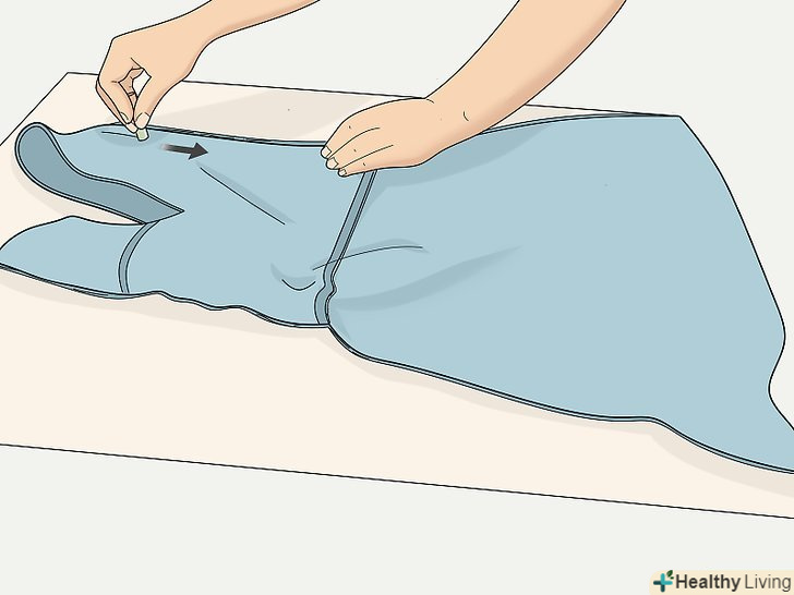 Кравецьким крейдою відзначте на плаття окружність ремінця. Візьміть крейду і прокресліть по талії лінію саме там, де проходить ремінець. При бажанні можна просто зробити кілька міток або увіткнути в тканину кілька кравецьких шпильок, якщо вам так буде зручніше. Потім зніміть плаття і за допомогою лінійки з'єднайте мітки або шпильки єдиною лінією. [6]- Так як з розміткою талії ззаду у вас можуть виникнуть складності, має сенс залучити помічника для виконання даного кроку.