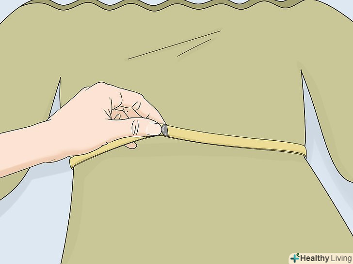 Приготуйте відрізок білизняний гумки на пару сантиметрів довше вашого обхвату талії. Візьміть білизняну гумку шириною 5 мм, відмотайте від мотка довжину вашого обхвату талії і додайте до неї ще 2 см, після чого відріжте. [12]