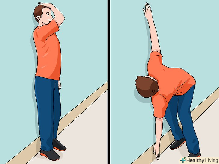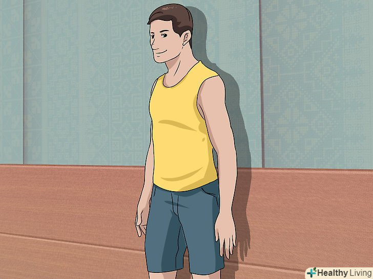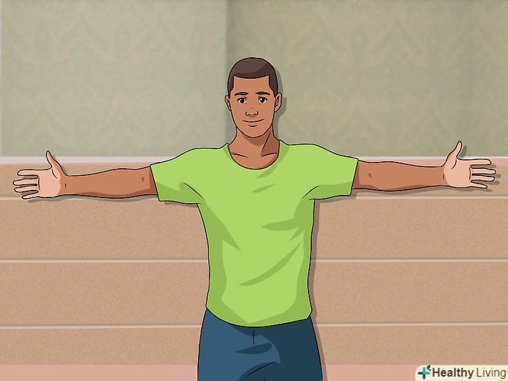 Встаньте прямо, притулившись спиною до стіни. виміри вийдуть точніше, якщо стояти максимально рівно — коли ви сутулитеся, розмах рук виходить менше. Якщо поруч немає стіни, то просто встаньте якомога пряміше і розправте плечі.