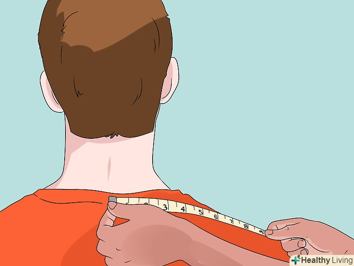 Прикладіть один кінець вимірювальної стрічки до основи шиї. щоб завмер вийшов найбільш точним, прикладіть кінець стрічки якраз по центру шиї. Потім виміряйте довжину руки, пустивши стрічку по плечу і вниз по руці. Так ви зніміть точну мірку для одягу. [2]