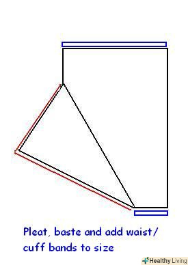 - У вас повинна вийти пара шаровар приблизно вдвічі більше вашого розміру. Тепер вам потрібно зібрати ці гігантські площині, щоб пояс і низ штанин відповідав вашому розміру, і створити традиційний пишний силует.