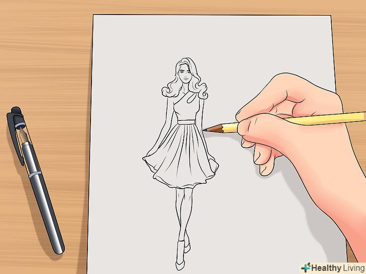 Почніть робити ескіз бажаної моделі. використовуйте олівець для цієї мети. Якщо ви допустите помилку, ви зможете без проблем виправити її. Для початку намалюйте обрис вашої моделі, поступово додавайте деталі. Коли ви закінчите і будете задоволені результатом, обведіть отримане зображення ручкою. [19]