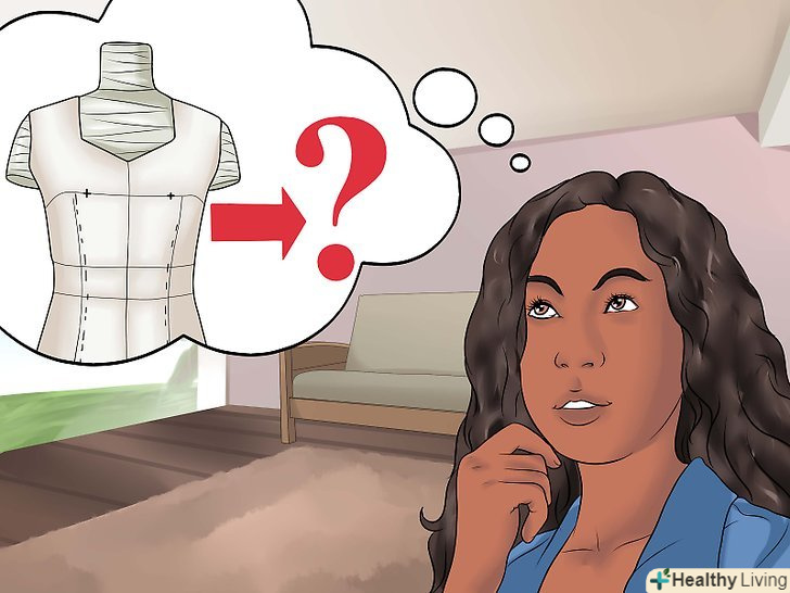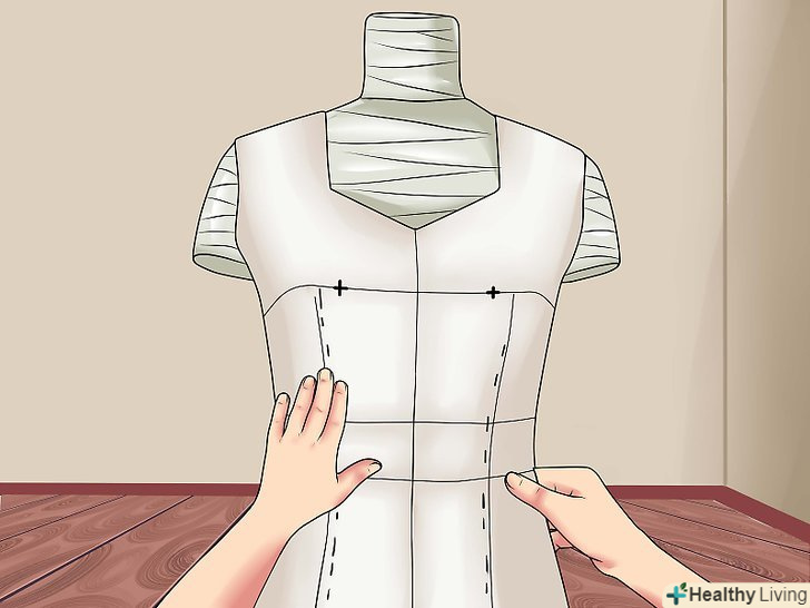 Зробіть манекен. вам знадобиться манекен для примірки і підгонки своїх творінь. Ваш манекен повинен відповідати фігурі людини. Якщо у вас немає манекена, ви можете зробити свій, використовуючи при цьому бажаний розмір. [22]- Надіньте сорочку, яку Ви вже не носите, і дуже акуратно обмотайте її скотчем в кілька шарів. Завдяки цьому ваш майбутній манекен буде тримати форму, відповідну пропорціям вашого тіла.