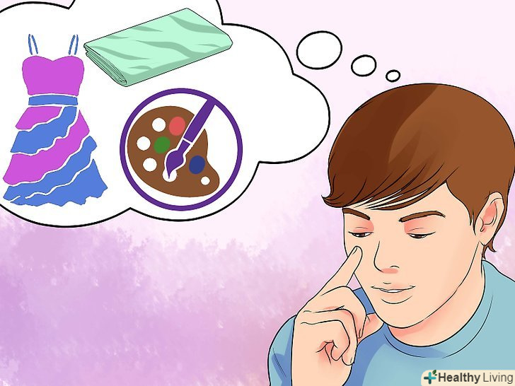 Зверніть увагу на колір і візерунки на тканині. колір і візерунки на тканині-важливі складові, які впливають на успіх вашого кінцевого результату. Подумайте про те, хто буде носити цей предмет одягу, і куди ця людина зможете надягати його. Подумайте про вашого клієнта і про його запитах. Перш за все, ваш предмет одягу повинен добре виглядати. Тут немає жорстких правил. Ви дизайнер, і ви повинні в першу чергу бути чесним з самим з собою.- Погляньте на колірне коло. Пам'ятайте, що контрастні кольори (ті, які знаходяться навпроти один одного) підсилюють один одного. Використання контрастних кольорів може сприятливо відбитися на створеному вами образі, зробивши його більш ефектним. Але з іншого боку, будьте обережні, щоб ваша модель не вийшла занадто різкою і відштовхуючий. [10]