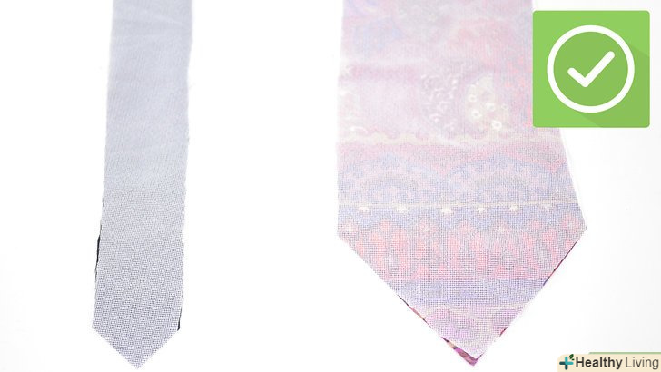 Придбайте в найближчому магазині тканини вподобану вам тканину. для виготовлення відмінного краватки немає необхідності дотримуватися будь-якого конкретного типу тканини, Однак, пам'ятайте про те, що більш щільні тканини краще підходять для цієї мети. Щоб зшити одну краватку, вам буде потрібно не менше 1,35 м тканини для його основної деталі і клапоть підкладкової тканини розміром близько 13х15 см для його тильного боку. [1]- Популярним варіантом підкладкової тканини для краваток є штучний шовк.