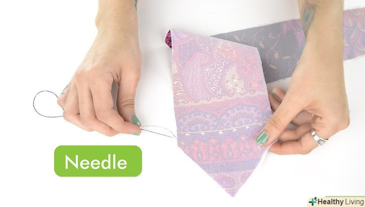 - Зшийте сторони краватки. для цього ви можете скористатися голкою з ниткою або швейною машиною. У більшості моделей краваток вам попередньо потрібно підшити кінчик вироби, після чого ви складіть краватку і виконайте Центральний задній шов. [13]
