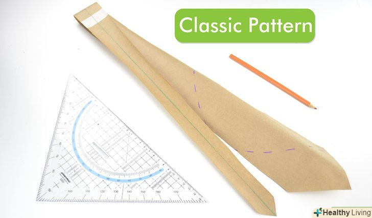 Підберіть відповідну викрійку. існує багато можливих варіантів викрійок для краватки. Коли ви визначитеся з сподобалася вам моделлю вироби, ви без зусиль зможете БЕЗКОШТОВНО роздрукувати відповідну викрійку прямо з мережі. Альтернативою роздруківці викрійки може стати обведення контурів вже наявного краватки за допомогою олівця і лінійки. [5]- При роздруківці викрійки краватки на принтері вам буде потрібно кілька аркушів паперу, так як довжина краватки перевищує розміри стандартного аркуша А4. Вам доведеться склеїти між собою деталі роздрукованої викрійки, перш ніж переносити її на тканину.