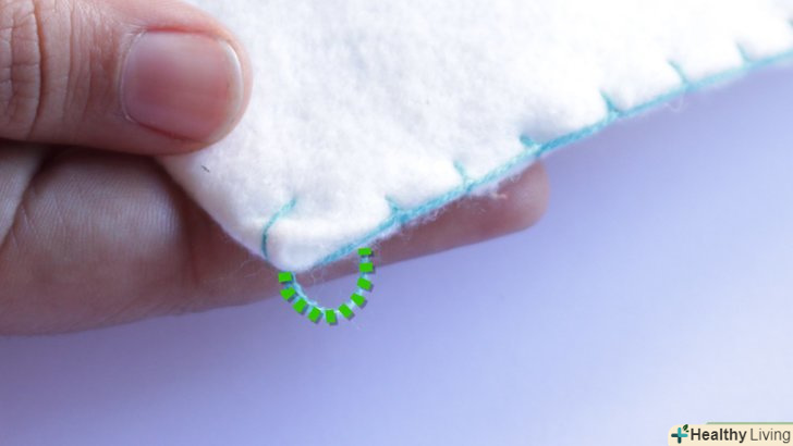 Продовжуйте прошивати петельні стібки до тих пір, поки не дійдете до самого кінця тканини.- З'єднайте останній стібок з першим, підчепивши голкою верхню частину першого стібка. це дозволить зімкнути воєдино петельний шов.