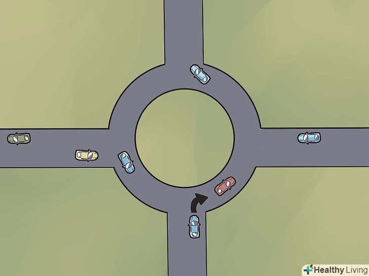 Не забудьте дати дорогуобом смугам руху в багатосмуговій кільцевій дорозі. [3] якщо ви знаєте, що будете повертати направо і, отже, залишатися в крайньому правому ряду, але вдругвідіте зустрічний автомобіль в лівому ряду, пропустіть його перед в'їздом в кільцеву. Автомобілі можуть потрапити на вашу смугу, коли ви в'їжджаєте в кільцеву, і викликати аварію.