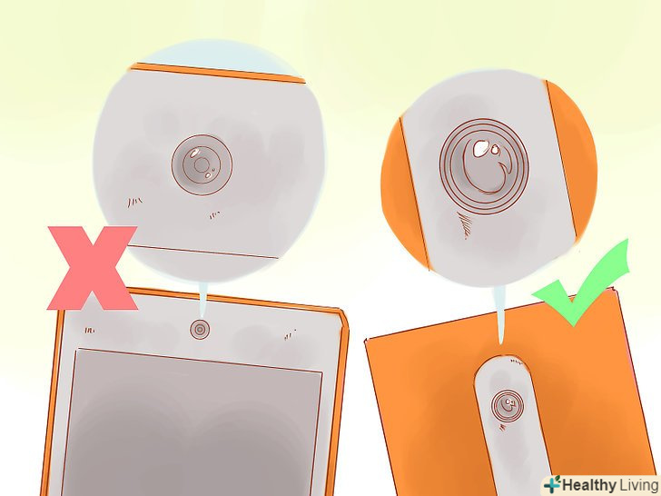 Не використовуйте дзеркало, якщо немає ніякого іншого способу, щоб отримати знімок, який ви хочете. фотографія відіб'ється зліва-направо, ваша камера буде видно, і, скоріш за все, ви самі будете мати трохи дивний погляд. Плюс, ваш "Селфі" може спотворитися, так як дзеркало не завжди відображає абсолютно точний образ. Витягніть вперед руку, використовуйте своє зап'ястя, щоб направити камеру на обличчя, і зробіть знімок. Можливо буде потрібно витратити трохи часу на тренування, поки все вийде правильно, але в кінці кінців ви будете точно знати, як повернути камеру, щоб в об'єктив потрапило все обличчя (і ніколи не відсікайте верх голови).- Виняток становить ситуація, коли ви хочете зробити знімок всього тіла, так як може бути важко захопити більше, ніж Ваша голова і плечі, не використовуючи дзеркало.