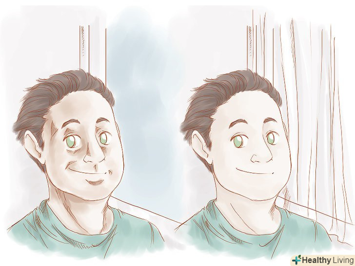 Виберіть хороший ракурс. замість того, щоб робити знімок в лоб, поекспериментуйте з різними ракурсами, щоб краще показати себе. Якщо ви повертаєте голову на кілька градусів вправо або вліво, ваші риси будуть здаватися менш плоским. Тримайте фотоапарат трохи вище, щоб вона дивилася злегка вниз, це зробить ваші очі візуально більше і допоможе вам уникнути "свинячого п'ятачка". Ось кілька ідей для знаходження хорошого ракурсу:- Знайте свою «хорошу сторону» і робіть знімок з цієї сторони вашого обличчя. "Хороша" сторона вашого обличчя та, що виглядає найбільш збалансованою і симетричною.