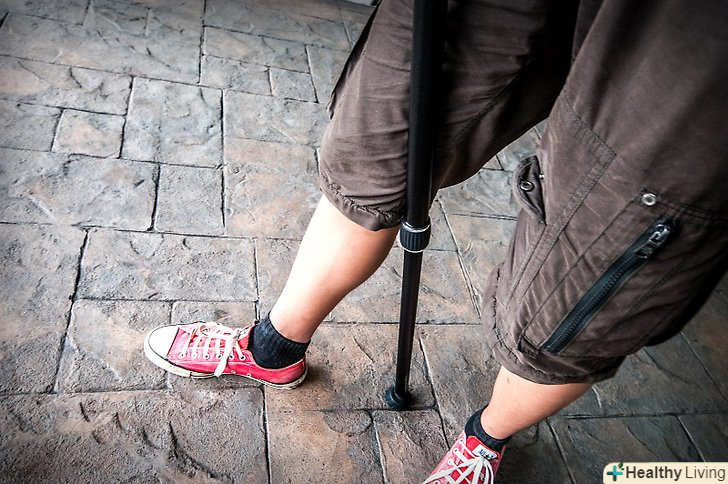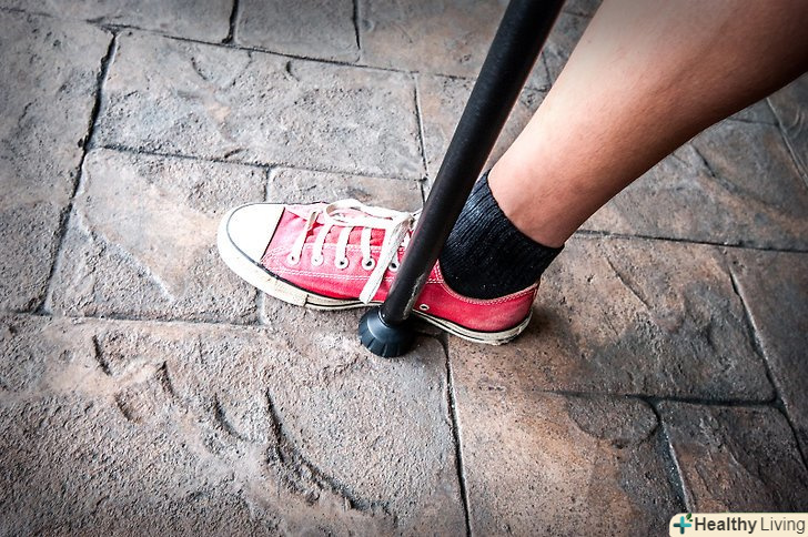 Встановіть монопод навпроти вашого підйому і зафіксуйте його ступень. Встаньте прямо, ноги нарізно, і поставте нижню частину монопода впритул до підйому ноги. Нахиляйте верхню частину монопода до себе, поки він не досяг потрібного положення для використання. Можливо, вам доведеться поставити ноги ширше або нахилитися в одну сторону.