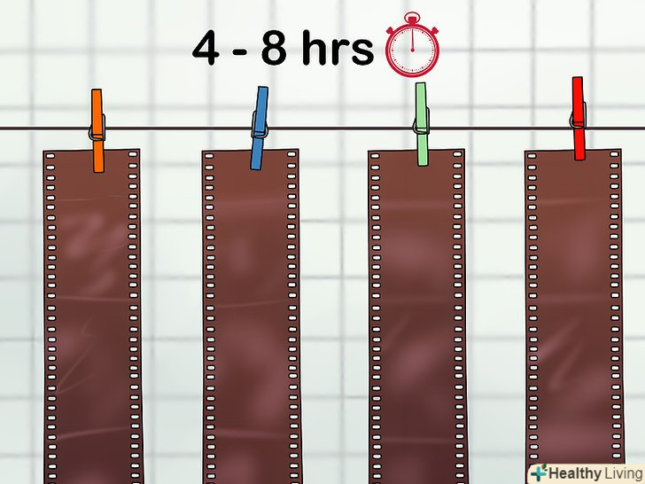 Висушіть плівку. плівці потрібно від 4 до 8 годин для проявки.- Дістаньте котушку з бачка ще раз і розкрутіть щоб відкрити.