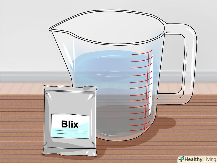 Розмішайте пакет Блікса у воді. налийте ще 1600 мл гарячої води в інший чистий стакан або пластикову ємність. Перемішайте "Блікс" або "Фіксаж" у воді і долийте ще води так, щоб вийшло 2000 мл.- Блікс також відомий як»відбілююче-фіксуючий розчин" [1] Якщо у вас кілька пакетиків Блікса, слід додавати їх в алфавітному порядку: «А», потім «B».