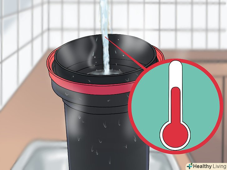 Обполосніть бачок гарячою водою. розділіть його на окремі частини: бачок, центральний стрижень, котушка, верхня частина. Обполосніть бачок гарячою водою і насухо протріть чистою тканиною.- Якщо на бачку є засохлі плями від реактивів, змийте їх гарячою водою і протріть чистою тканиною.