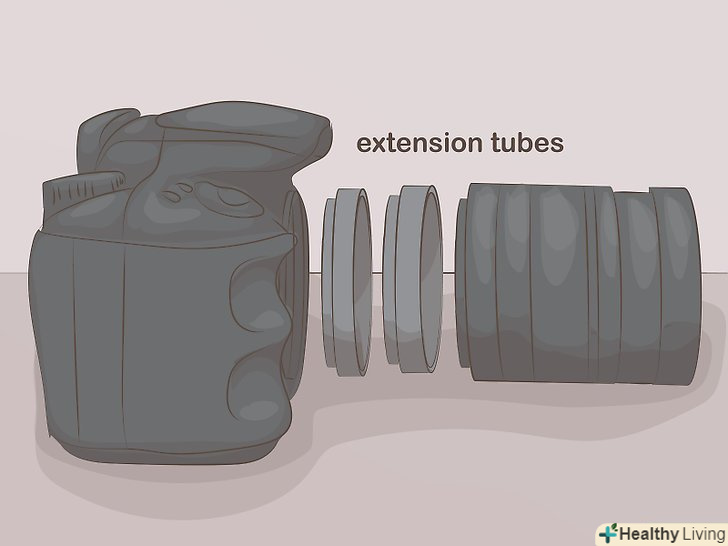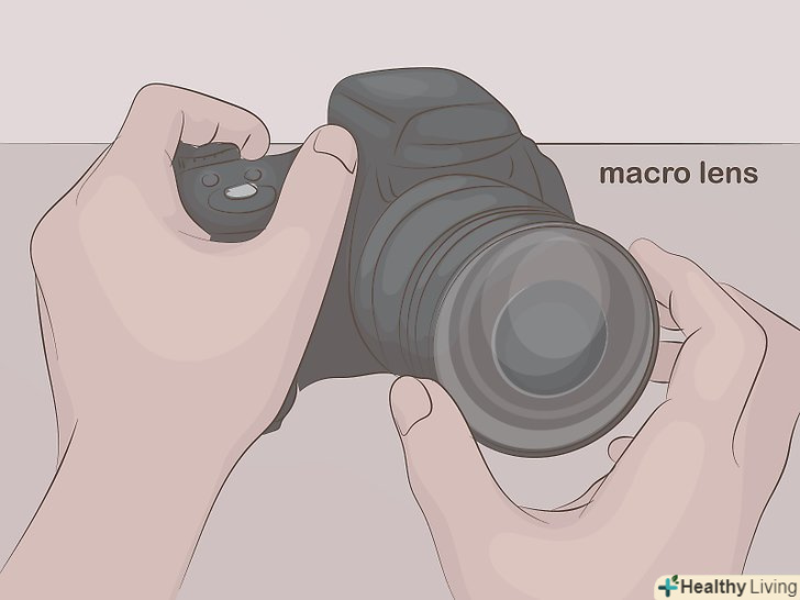 Встановіть на фотоапарат макрооб'єктив. Макрооб'єктив дозволить вам відобразити око найбільш детально. Фокусна відстань макрооб'єктивів може варіюватися від 50 до 200 мм.звичайно, можна отримати непогані знімки ока і зі звичайним об'єктивом, але при цьому очей не заповнить собою весь кадр і не вийде настільки детальним, як вам того хотілося б. [8]- Якщо у вас немає макрооб'єктива і ви не бажаєте витрачатися на його придбання, спробуйте в якості альтернативи скористатися збільшувальним фільтром. [9]