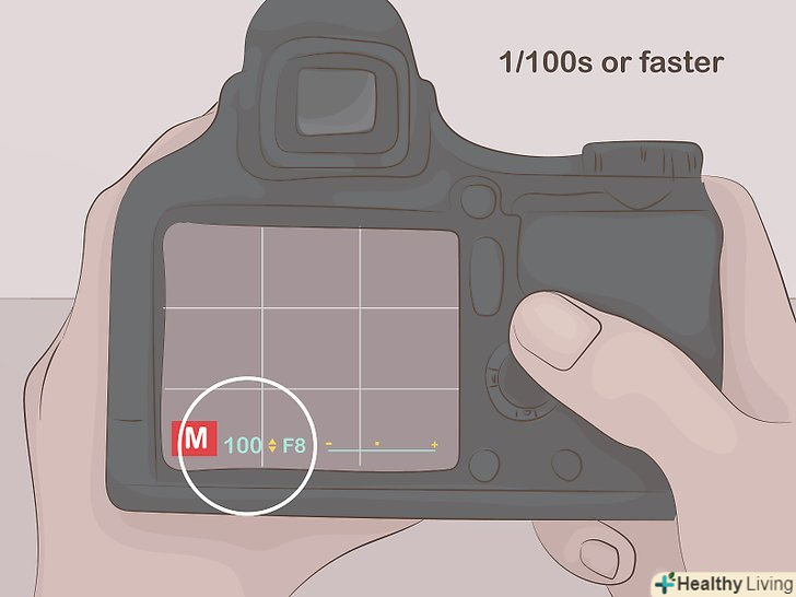 Використовуйте коротшу витримку, щоб виключити розмиття кадру. око постійно рухається, через що кадр може вийти нерізким. Для отримання різкого зображення Встановіть витримку на 1/100 секунди або ще менше. [13]- Застосування Триноги також дозволить вам використовувати більш коротке значення витримки.