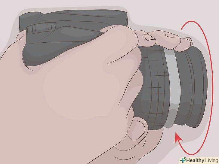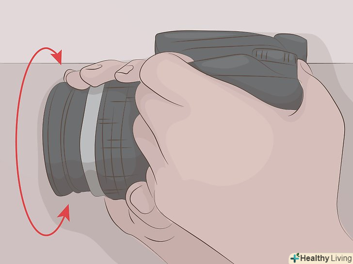 Вручну налаштуйте фокус. Автофокус може не сфокусувати об'єктив саме на тих деталях очі, які вам необхідно відобразити, тому краще відключити його і виконати фокусування вручну. Щоб самостійно налаштувати фокус, прокрутіть фокусне кільце об'єктива до повного розмиття кадру. Потім почніть крутити його в зворотну сторону, поки ті деталі, які ви хочете відобразити, не опиняться у фокусі. [15]