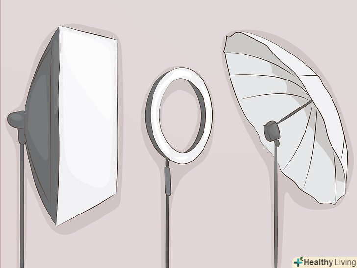 Створіть цікаві відблиски за допомогою постійного джерела світла. часом на фотографіях помітні невеликі білі цятки відблисків в очах людей. Цікаві відблиски можна створити за допомогою постійного джерела світла. Наприклад, для створення потрібного ефекту можна використовувати освітлювальний софтбокс, фотозонт, кільцеву лампу або ж природне сонячне світло. [3]- Також переконайтеся в тому, що сама камера не буде відкидати тінь на об'єкт зйомки.