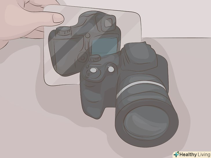 Встановіть дзеркало позаду камери, щоб зробити фотознімок власного ока. якщо ви хочете виконати макрозйомку власного ока, то найпростіше буде скористатися фотокамерою з поворотним екраном, який дозволить вам переконатися в правильному ракурсі кадру і наявності необхідного фокуса. Але якщо ваш фотоапарат не оснащений поворотним екраном, установка дзеркала за наявним екраном фотокамери теж дозволить вам побачити відображуваний на ньому кадр. [7]- Якщо ж ви збираєтеся використовувати для фотозйомки телефон, то вам теж буде потрібно застосувати дзеркало вищевказаним способом. Це пов'язано з тим, що фотозйомка в режимі Селфі (передньою фотокамерою) не кращим чином впливає на освітленість знімка.