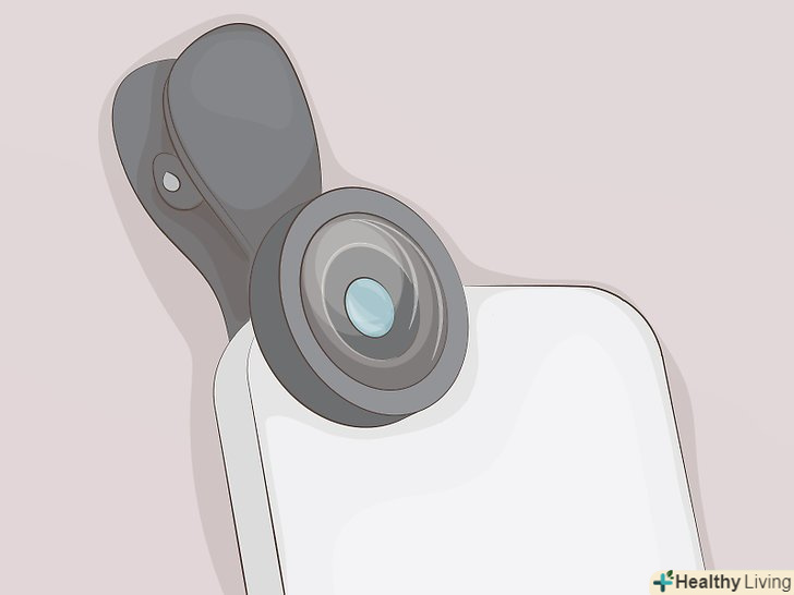 При зйомці на телефон використовуйте режим макрозйомки або спеціальний макрооб'єктив для телефону. у багатьох смартфонів є спеціальний режим для макрозйомки, який дозволить вам отримати більш детальну фотографію ока, ніж при стандартних налаштуваннях телефонної фотокамери. А спеціальний макрооб'єктив для телефону дасть вам ще кращі результати. [10]- Знайти макрооб'єктиви для стільникових телефонів можна практично в будь-яких магазинах, що торгують подібного роду електронікою.