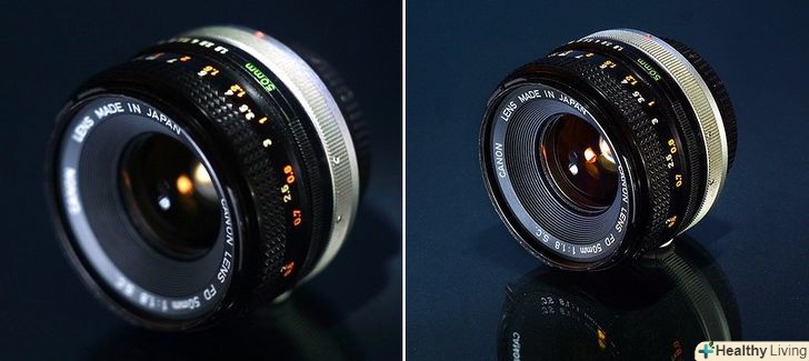 - Використання малої апертури (високе число f/) також сфокусує лінзу на непотрібних в кадрі речах, таких як пил на сенсорі, бруду або пошкодженнях лінз. Вам потрібно почистити сенсор лінз або повернутися і відредагувати зображення будинку. Якщо на лінзі велика подряпина, то не направляйте фотоапарат на сонце, що викличе спалах на фотографії. [4] (зайва чистка часто викликає безліч проблем за раз, ніж пара точок пилу. Якщо у вас дешевий фільтр на лінзі, переважно багатошаровий для запобігання спалахів, чистіть його чим захочете. Пил на сенсорі не буде великою проблемою, якщо ви міняєте лінзи в спокійному, позбавленому пилу місці.)