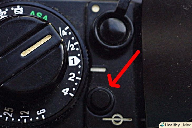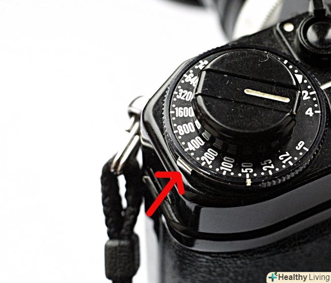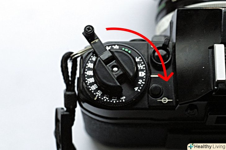 Встановіть чутливість плівки. це необхідно для того, щоб експоцизія правильно визначалася в автоматичному режимі. Колесо зі значеннями чутливості розташовується навколо рукоятки перемотування. На ньому також є металева кнопка, зображена на картинці. Натисніть на кнопку і промотайте колесо до потрібного значення ISO (воно повинно відповідати ISO вашої плівки).