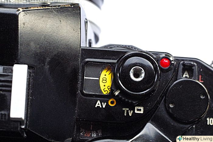 - Режим пріоритету діафрагми дозволить вам встановити значення діафрагми , а камера потім підбере відповідне значення витримки автоматично. Використовуйте цю функцію, якщо хочете знімати при широко відкритій або маленькій діафрагмі (тобто якщо хочете впливати на глибину різкості). Переведіть колесо регулювання в положення " Av " і виберіть потрібне значення діафрагми за допомогою перемикача AT.Поверніть колесо в положення " Av " і виберіть значення діафрагми.