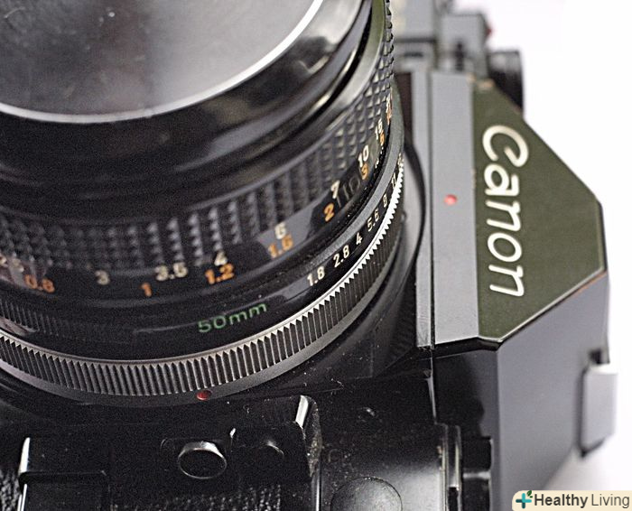 - Закріпіть об'єктив на фотоапараті. нижче ми розповімо, як підключити оригінальний об'єктив FD з сріблястим кільцем, тобто об'єктив, який найчастіше продавався в комплекті з цією камерою раніше. Якщо у Вашого об'єктива немає кільця, то вам дістався представник більш нового покоління об'єктивів кінця 70-х, і він закріплюється трохи інакше. В інструкції, наведеній нижче, ми просимо повернути сріблясте кільце, але вам необхідно буде повертати весь об'єктив до характерного клацання.
