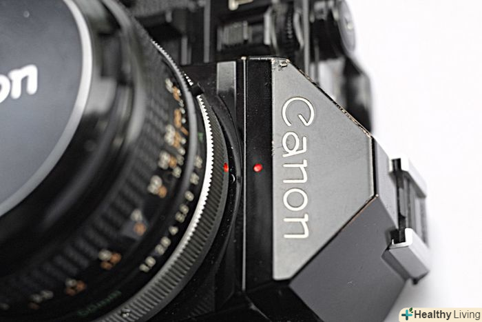 Подивіться у видошукач і плавно натисніть кнопку спуску затвора до середини. у видошукачі ви побачите значення витримки і діафрагми. Якщо будь-які цифри блимають, це означає, що ви або вибрали невідповідні значення витримки для поточного значення діафрагми, або встановили занадто велике або занадто маленьке значення діафрагми для обраної витримки. [2] скорегуйте витримку або діафрагму.- Сфокусуйтеся. у камері A-1 передбачені два корисних механізму, що сприяють різкості знімка. Один з них - це поділ кадру навпіл, і якщо вам вдається навести фокус, зображення з'єднується.