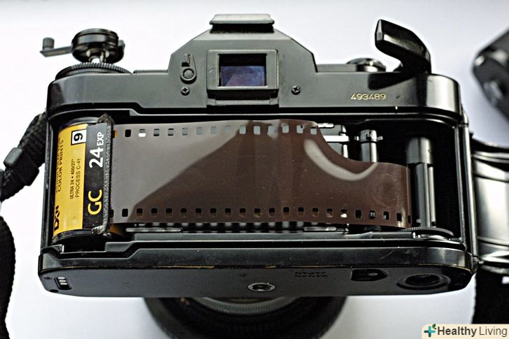 Витягніть рукоятку перемотування і почніть обертати її за годинниковою стрілкою до тих пір, поки вся плівка не перемотається в свою котушку. при перемотуванні лічильник кадрів буде відраховувати кадри у зворотний бік. Продовжуйте мотати плівку до тих пір, поки рукоятка не почне обертатися туго, а потім різко стане провертатися легко - це буде означати, що плівка цілком повернулася в свою котушку.- Відкрийте задню кришку камери, потягнувши за рукоятку перемотування вгору. кришка відкриється автоматично. Дістаньте плівку і проявіть її. Вставте наступну котушку плівки і продовжуйте насолоджуватися своєю першокласною класичною камерою!