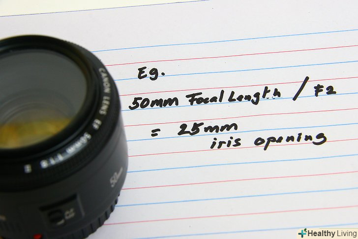 Зрозумійте, що таке експозиція і як вона впливає на фотографії. експозиція-це загальний термін, який охоплює два аспекти фотографії, що визначають, наскільки світлим або темним виявиться зображення.- Для контролю експозиції в камеру вбудований експонометр. Експонометр визначає правильну експозицію, а саме, значення діафрагми і витримки. Значення діафрагми визначається як відношення фокусної відстані до розміру отвору діафрагми і позначається дробом з буквою "f" (від слова "focus") в чисельнику, а іноді — заголовної "F" і числом. Значення f/2.8 (F2.8) означає співвідношення 1/2.8, тоді як f / 16 (F16) — це 1/16. Чим більше це число, тим меншому отвору діафрагми воно відповідає. Уявіть нарізаний на частини пиріг: 1/2.8 пирога набагато більше, ніж 1/16.