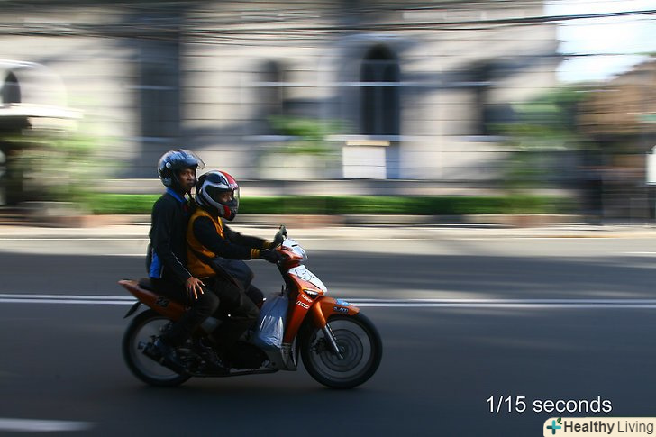 Зупиніть рух, змінивши значення витримки. змінюйте налаштування витримки у вашій камері, щоб отримувати чіткі знімки в русі. Якщо ви фотографуєте з рук, витримка повинна відповідати значенню фокусної відстані або бути швидше. Іншими словами, якщо ви знімаєте на об'єктив 100 мм, оптимальною буде витримка в 1/100 секунди. При такій швидкості затвора можна усунути змазування, що викликається струсом камери.