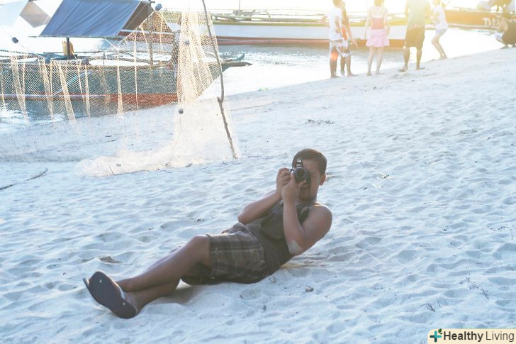 Переконайтеся, що всі члени сім'ї однаково раді зйомці. якщо хтось незадоволений, це буде дивно і смішно виглядати на фото. Зарядіться гарним настроєм.- Переконайтеся, що всі члени сім'ї потрапили в кадр. Навіть якщо ваш молодший брат відчуває себе незатишно на фото, ви повинні змусити його не ховатися, а посміхатися нарівні з усіма.