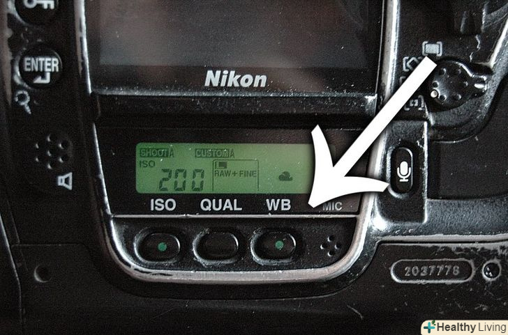 - У цифрових дзеркальних камерах зазвичай є кнопка на верхній або задній частині фотоапарата з позначкою "WB". Потрібно затискати цю кнопку і одночасно обертати колесо управління настройками, щоб вибрати бажаний баланс білого. У більш дешевих цифрових дзеркальних камерах таких налаштувань немає.