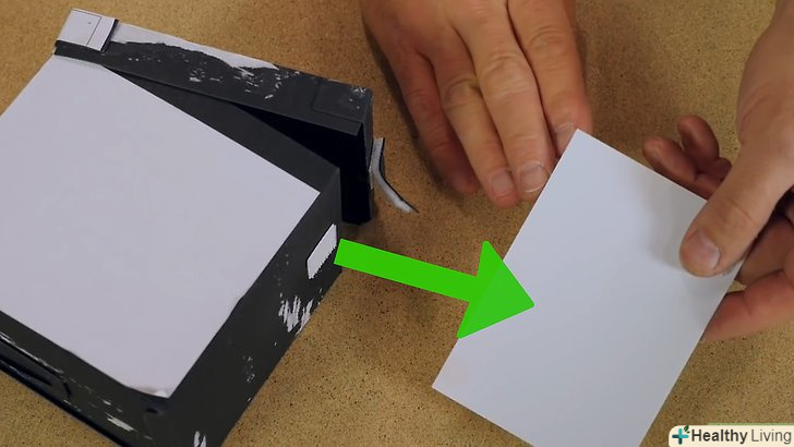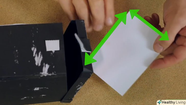 - Виріжте квадрат 5 на 5 см з темного картону. Переконайтеся, що отриманий квадрат досить великий, щоб закрити отвір, вирізане вами в днище коробки.