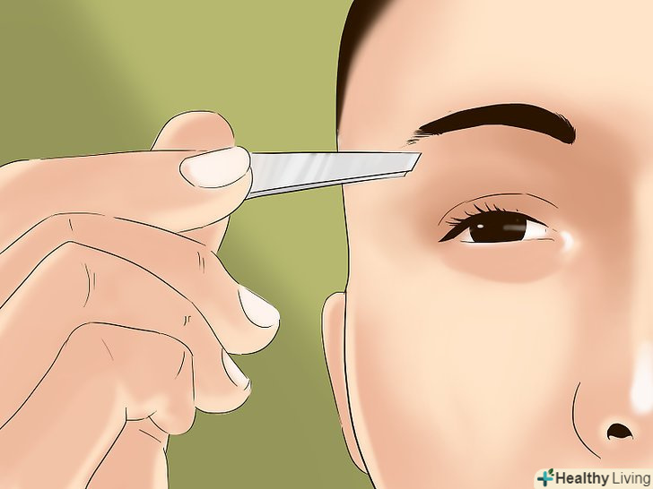 Скоректуйте форму брів, вищипавши зайві волоски (якщо робите це в звичайному житті). якщо ви хочете скорегувати форму брів, краще зробити це за день до фотозйомки, щоб почервоніння встигла пройти, а свіжі волоски не почали відростати. Якщо ви готові трохи витратитися з особливої нагоди, спробуйте вдатися до корекції брів воском. [25]- Якщо після вищипування брів шкіра почервоніє, спробуйте прикласти до неї мокрі холодні чайні пакетики або обробіть її гелем алое.