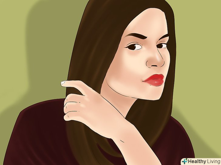 Поправте волосся. якщо ви ходите з розпущеним волоссям (особливо довгими), покладіть їх на плечах (при бажанні). Якщо волосся коротке, переконайтеся в тому, що вони лежать так, як треба. Безпосередньо перед фотозйомкою розітріть в долонях краплю гелю для волосся і проведіть руками по волоссю, щоб волосся не пушілісь. [13]- Якщо у вас дуже довге волосся, їх можна зібрати на одному плечі, а не розподіляти рівномірно по двох сторонах. Зверніть увагу, якщо волосся будуть прикривати собою лямки або рукава одягу, це може надати вам "оголений" вигляд. [14]
