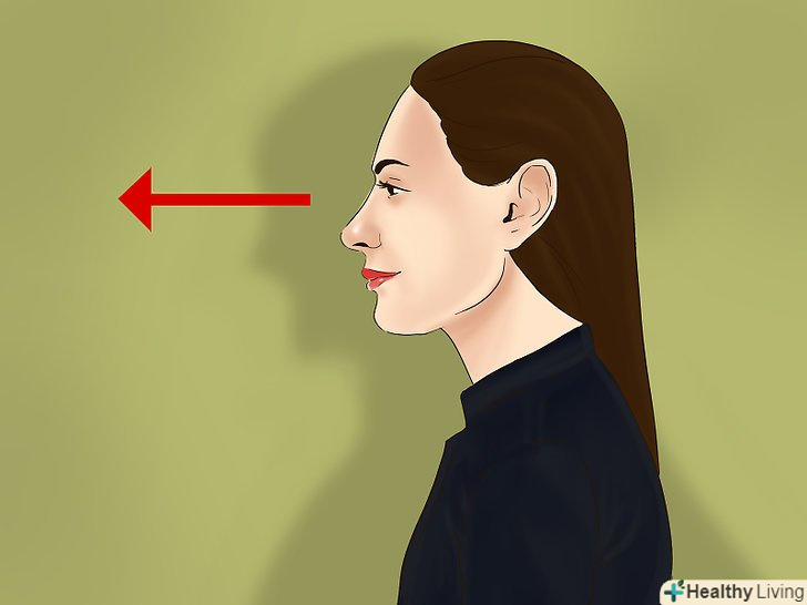 Випрямтеся. на фотографії ви повинні виглядати красиво і впевнено. Опустіть плечі вниз і відведіть їх назад. Не втягуйте голову в плечі, щоб уникнути утворення подвійного підборіддя, через якого ваша шия буде виглядати дуже товстою. [18] замість цього трохи подайтеся підборіддям вперед (набагато далі звичайного, але не занадто). [19]