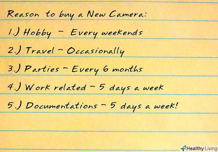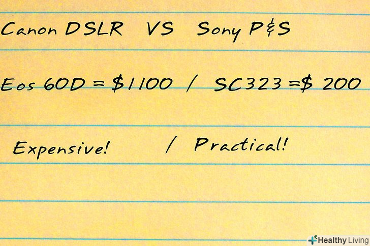 Запишіть, скільки разів ви очікуєте користуватися камерою. чим частіше ви збираєтеся її використовувати, тим більше шансів оновити вашу камеру. Купити хорошу або купити два рази.