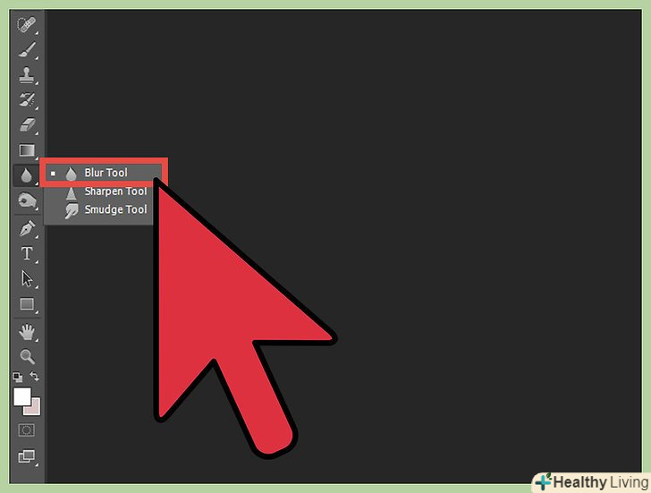 Використовуйте інструмент "розмиття" у Photoshop, щоб розмити фон на фотографії. виберіть на панелі інструментів зліва значок у вигляді краплі-це і його інструмент "розмиття".- У верхній частині екрана ви побачите налаштування розміру кисті та інтенсивності. Встановіть їх на свій розсуд. Так як на портреті фон займає досить великий простір, варто вибрати більший діаметр кисті.