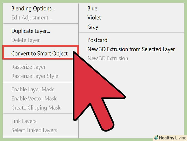 Виконайте розмиття фону, перетворивши зображення в смарт-об'єкт. це дозволить вам застосувати розмиття діафрагми, щоб зберегти об'єкт зйомки у фокусі і розмити задній план. [5]- На панелі Layers (шари) клацніть правою кнопкою миші на фоновому шарі, що містить ваше зображення і виберіть Convert to Smart Object (перетворити в смарт-об'єкт).