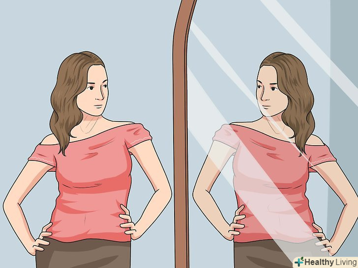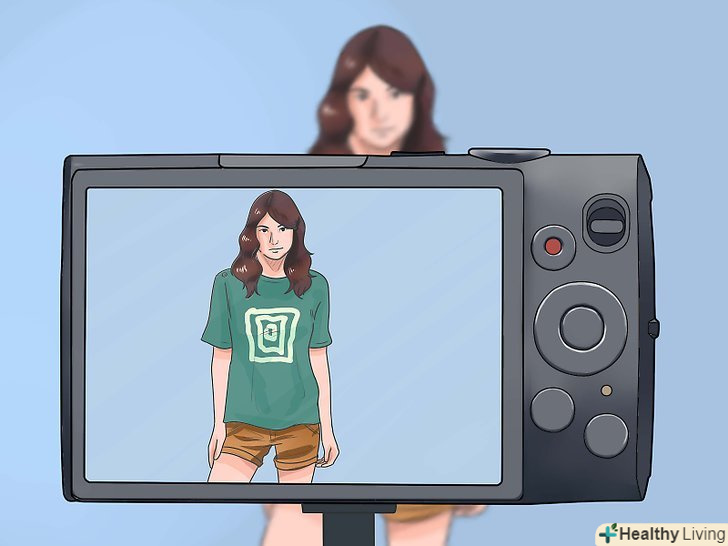 - Розташуйте торс так, щоб одне плече було ближче до камери, ніж інше. Це допоможе вам виглядати стрункіше. [23]