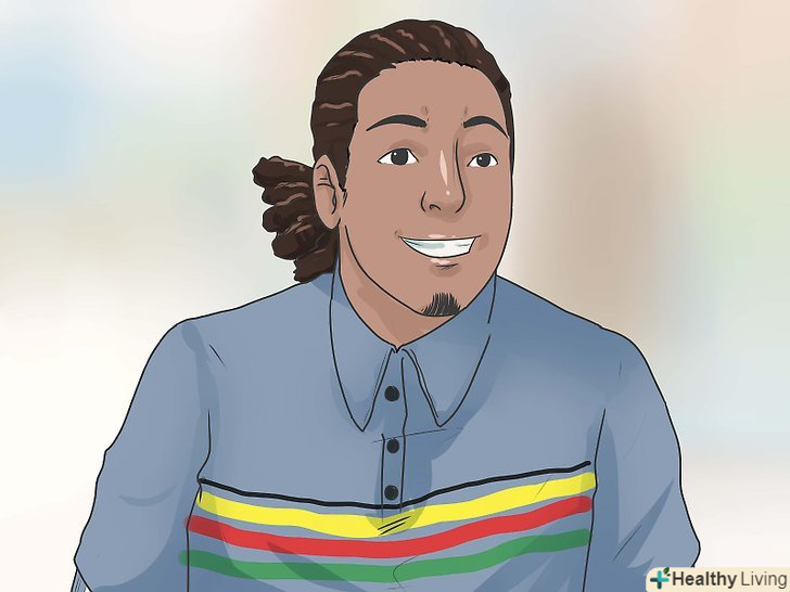 Посміхайтеся природно. Фальшива посмішка може зіпсувати фото. Вона виглядає натягнутою, і очі при цьому не посміхаються. Коли ви фотографуєтеся, посміхайтеся якомога більш природно і щиро, щоб вийде якнайкраще.- Для справжньої посмішки потрібні емоції. Якщо вам не весело прямо зараз, згадайте про що-небудь приємне, уявіть свою улюблену їжу або щось, що змушує вас сміятися. [5]