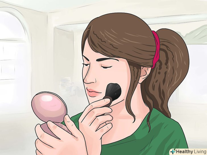 Грамотно нанесіть макіяж. якщо ви жінка, то від макіяжу багато в чому залежить, чи вийдете ви на фотографії чудово або жахливо. Навчіться розставляти правильні акценти, і ви будете виглядати прекрасно на будь-якому знімку.- Замість товстого шару тонального крему використовуйте консилер (коректор). Замаскуйте їм проблемні зони, такі як червонуваті місця навколо носа і темні кола під очима. Нанесіть консилер на ті частини, де на обличчі утворюються тіні (їх можна знайти перед дзеркалом, нахиливши підборіддя вниз). Потім нанесіть прозору пудру на T-зону-лоб, ніс, щоки і підборіддя, – щоб позбутися від жирного блиску. [8]
